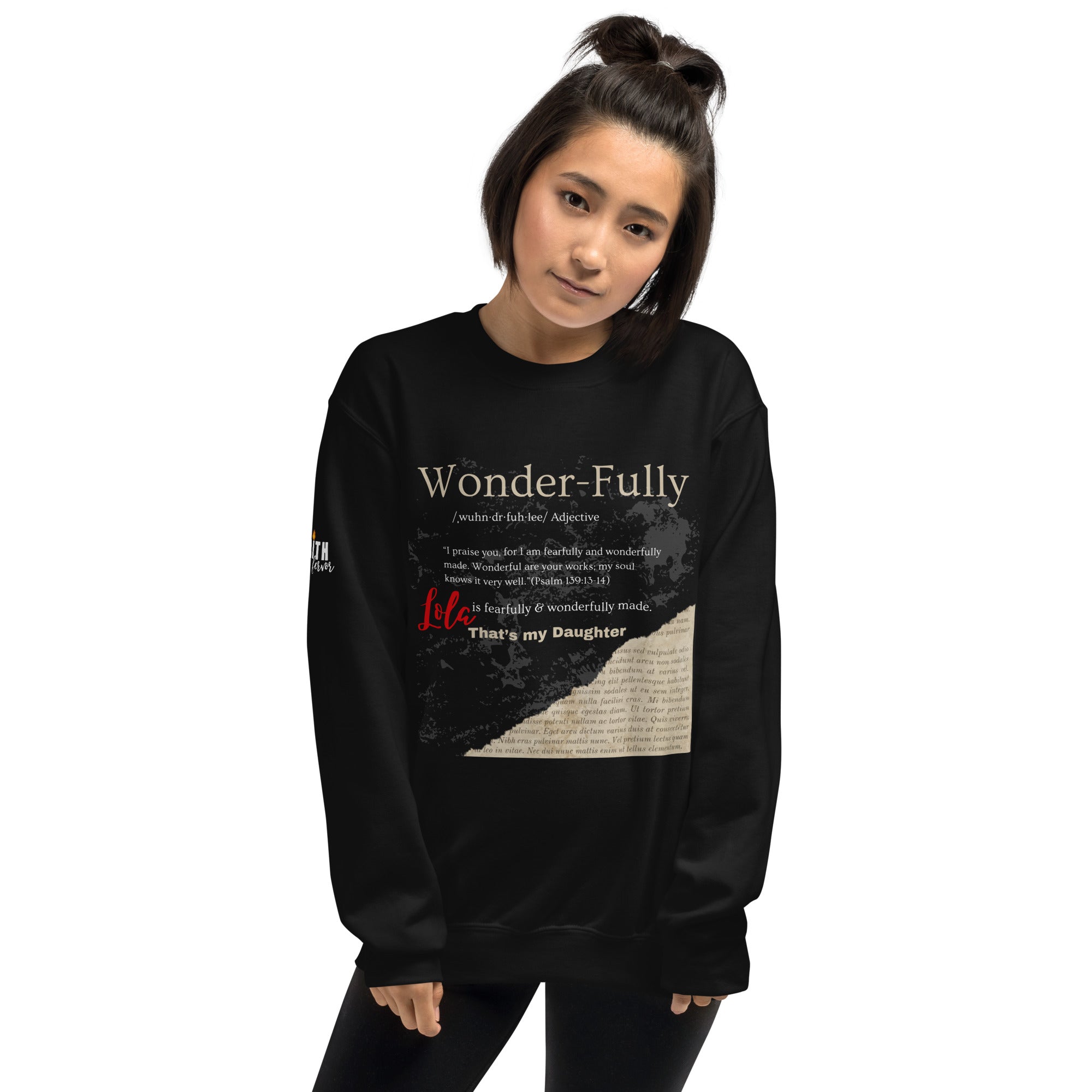 Customizing this sweatshirt is half the joy! You get to choose the declaration—Blessed, Bold, Wonderful, or Loved—and then add a personal touch that makes it uniquely theirs, like “that’s my mom” or “that’s my dad.” Whether you’re gifting it to a friend, a loved one, or treating yourself, creating it feels like wrapping someone in a blessing made just for them. It’s fun, meaningful, and guaranteed to make them smile.